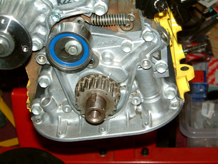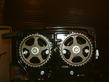 pulleys making note that the timing markers are in place for the intake and