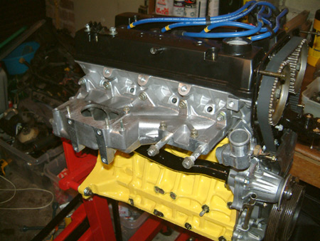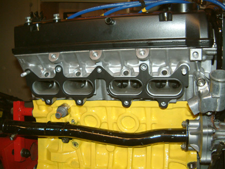Install the manifold and tighten the bolts and studs to 20ft/lbs.