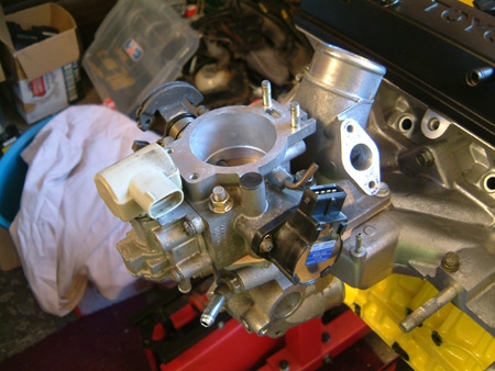Attach air outlet pipe to manifold and put on a new gasket for the throttle.